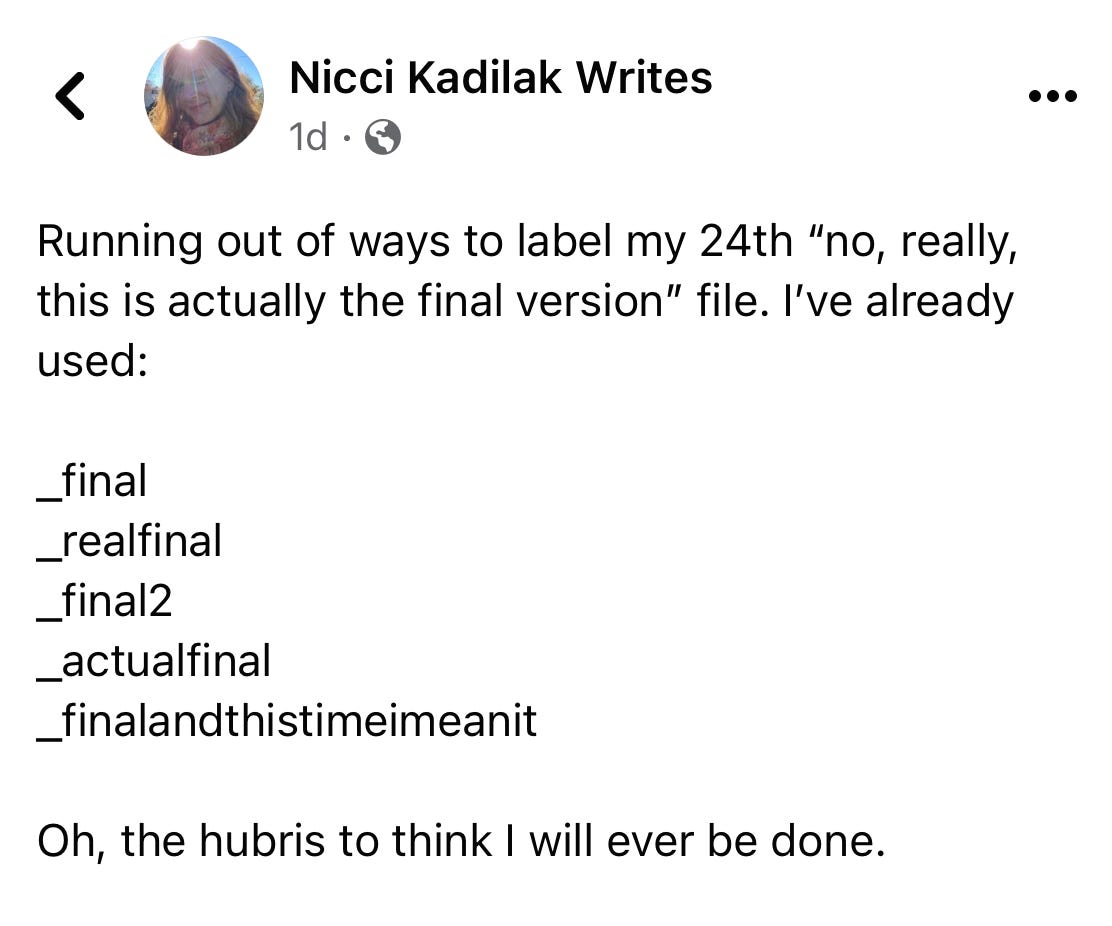 I’m not even going to bother with all the rest of the things, but holy crap it’s a lot. Good news is, now I’ve got a checklist for myself so next time I need to format a book, I’ll be ready.